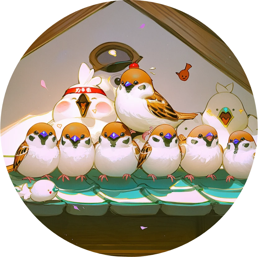 A flock of sparrow yokai living under the shrine eaves. They wake you up every morning with their noisy chirping. They are very talkative neighborhood loudspeakers that make alarm clocks unnecessary.