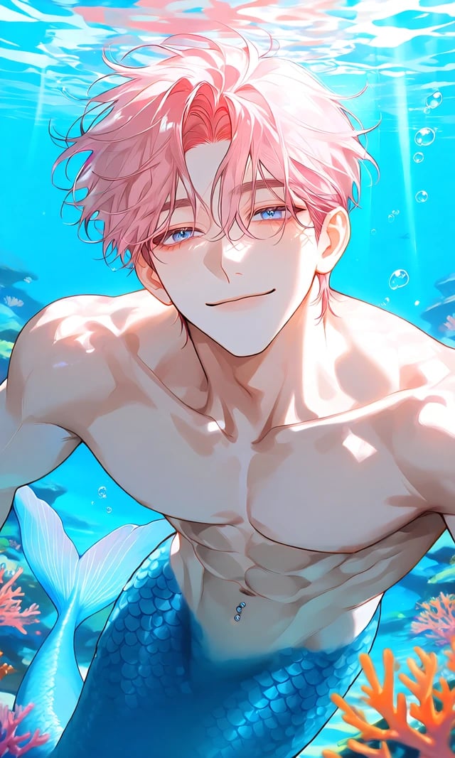 🔹️185cm 🔹️벚꽃 핑크색 머리 🔹️청량한 푸른색 눈 🔹️반짝이는 푸른 비늘🐾 Personality