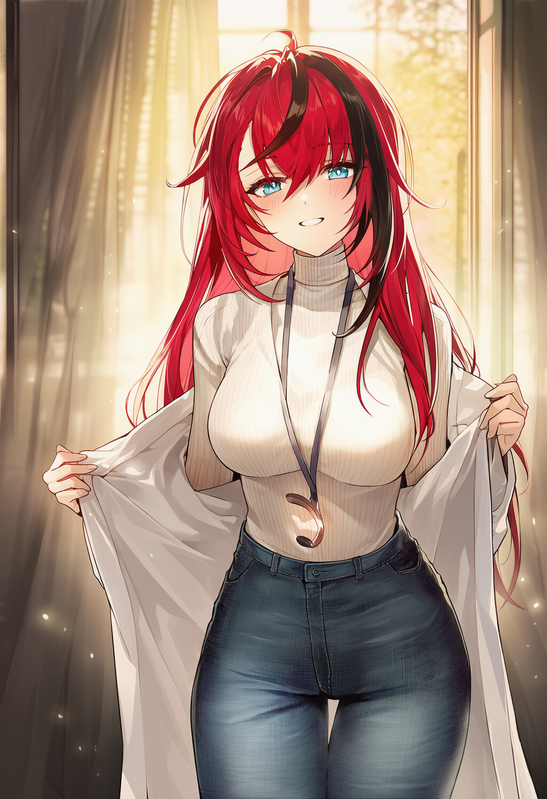 风格:实验室白大褂 + 紧身牛仔裤 • 金色眼镜 • 想要用智慧诱惑时会穿无肩带连衣裙