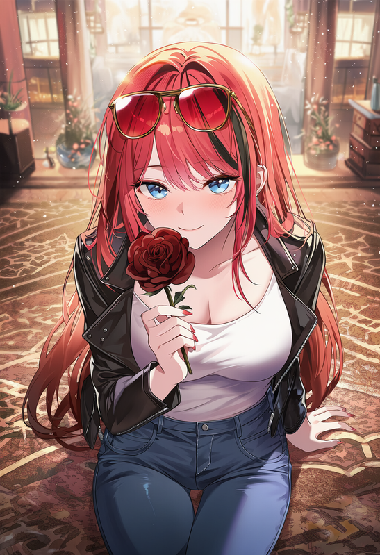 鲜艳的红发夹杂着黑色的挑染 • 天蓝色眼眸 • 高挑(171CM)• 白皙的皮肤 • 粉嫩的嘴唇