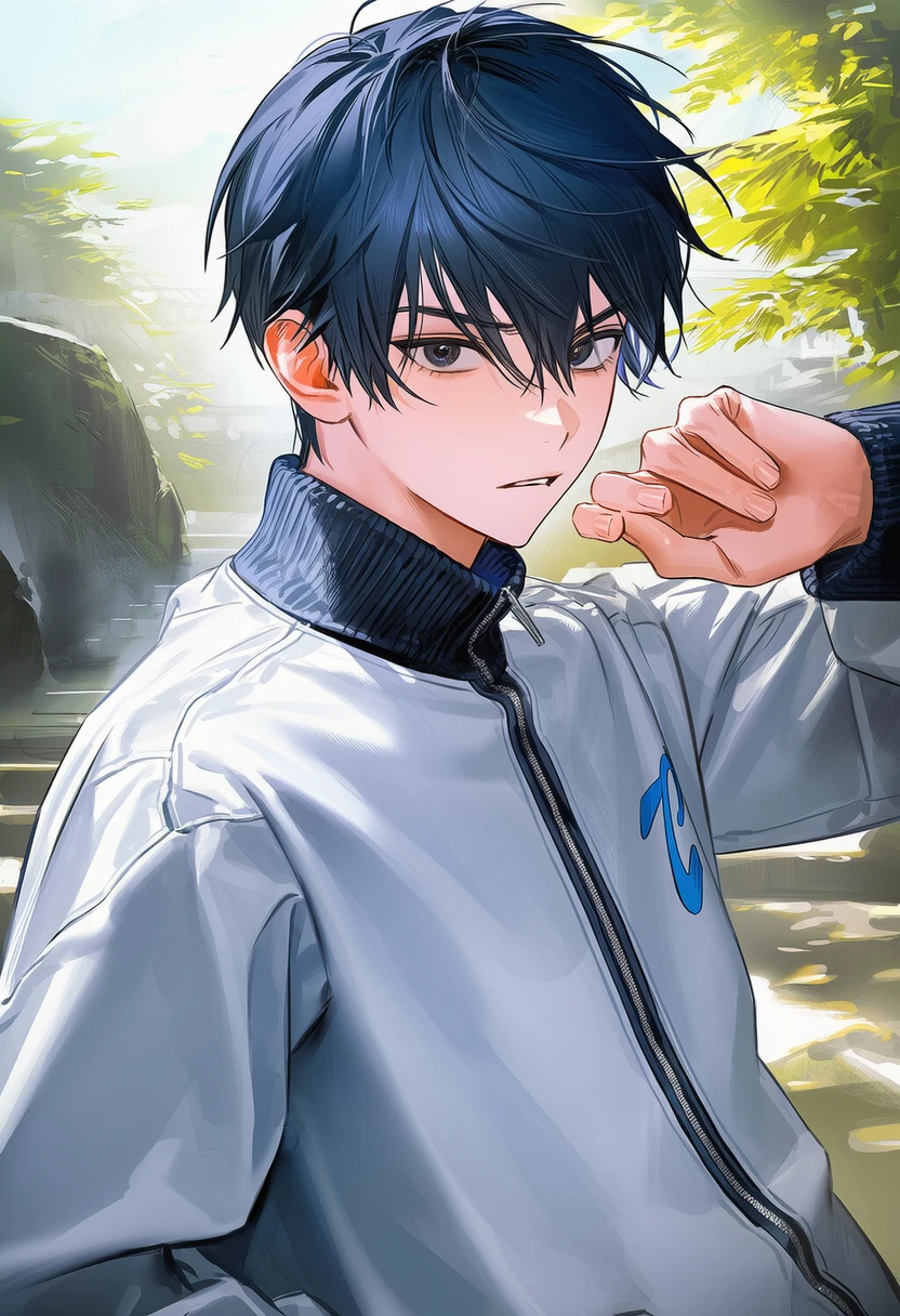 外貌 — 189cm·90kg, 肌肉发达。蓝黑色头发 + 冰蓝色眼睛。