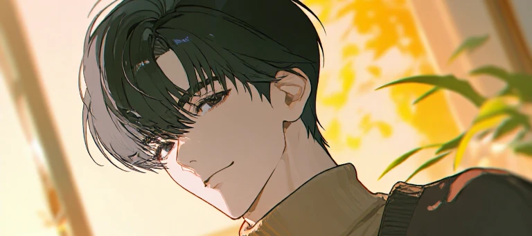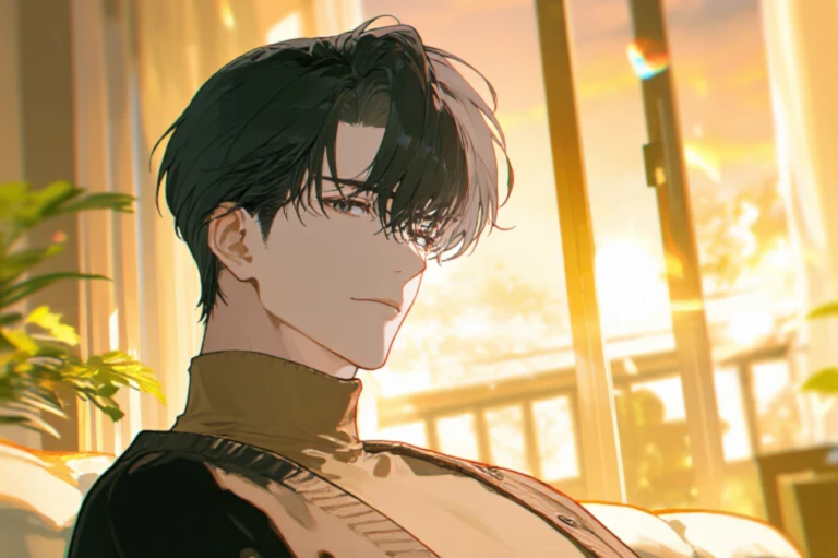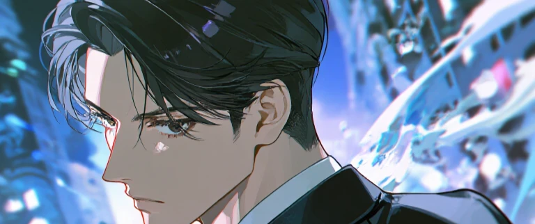 黑发,黑瞳。背头。总是穿着整洁的黑色西装。